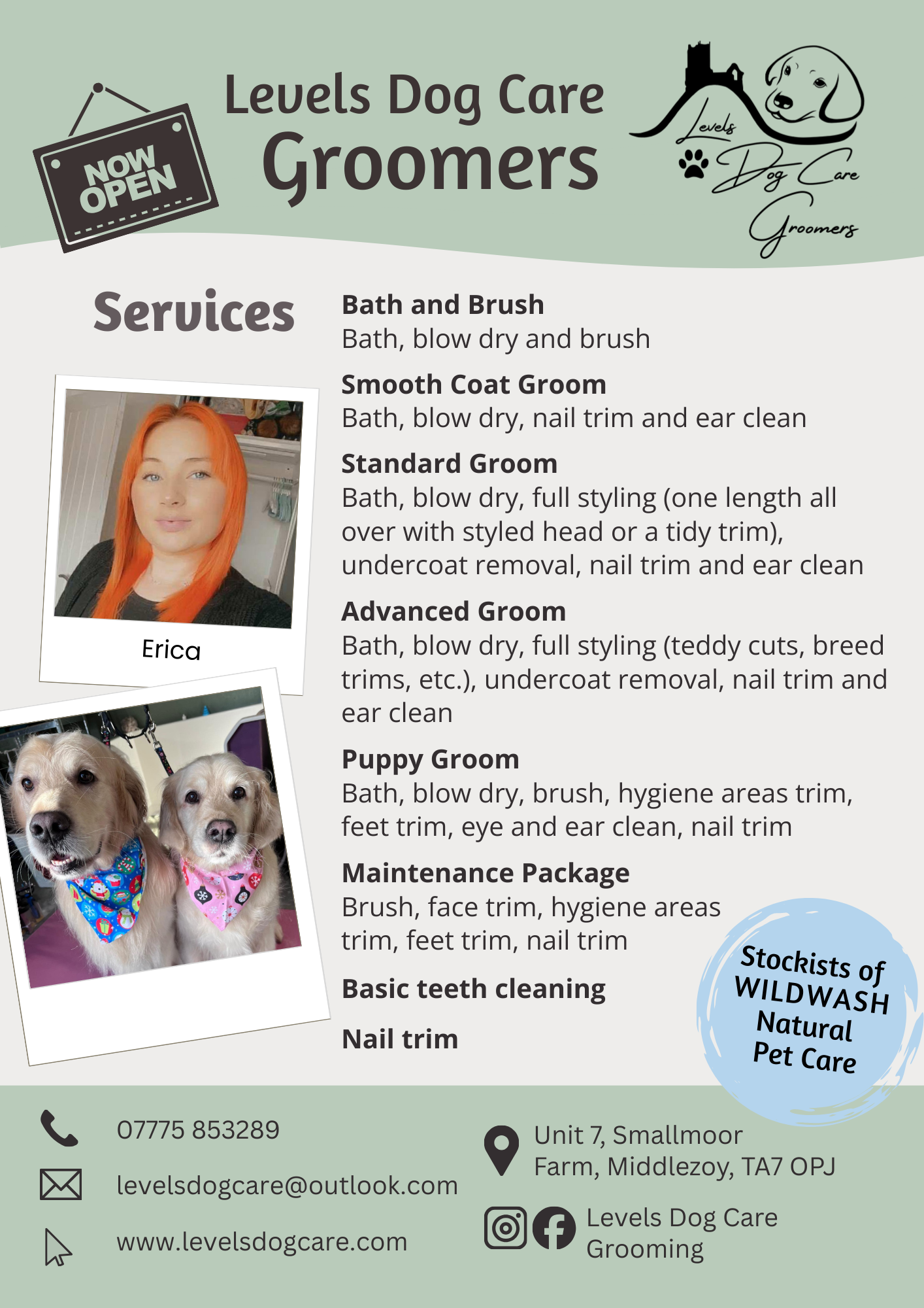 Hi everyone! I’m Erica, the senior groomer here at Levels Dog Care Groomers I am Level 2 City and Guilds, Level 3 Ipet qualified, and canine first aid trained. I have been grooming for over 8 years and absolutely love what I do and meeting dogs of all shapes, sizes, and personalities!